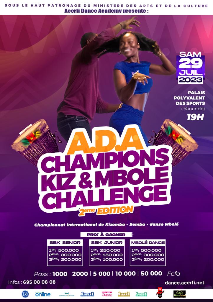 Nous sommes fiers de vous présenter la compétition de danse Kizomba, Semba et Mbolé qui se déroulera le 29 juillet 2023 au Palais des Sports de Yaoundé. Cette compétition unique en son genre est organisée sous le parrainage des hautes autorités et rassemblera les meilleurs danseurs et danseuses du Cameroun et d’ailleurs pour une soirée de folie. Nous vous invitons à venir admirer les performances époustouflantes des concurrents et à vous laisser transporter par les rythmes endiablés de la Kizomba, du Semba et du Mbolé.