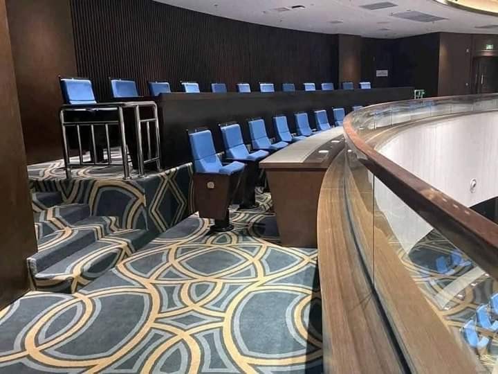 J’ai dĂ©jĂ entendu dire que ce Palais Ă©tait le plus grand, el plus beau et d’un confort incomparable dans toute l’Afrique. Je voudrais ainsi adresser mes vives fĂ©licitations Ă ceux qui l’ont conçu et rĂ©alisĂ© notamment, les entreprises BCUG et SIPPR, leurs suffragants techniques.