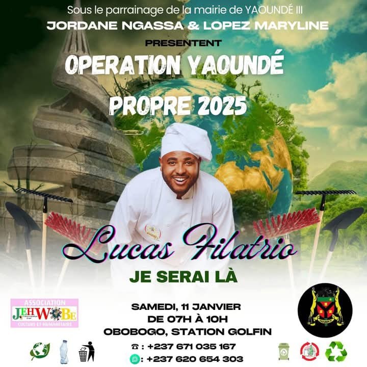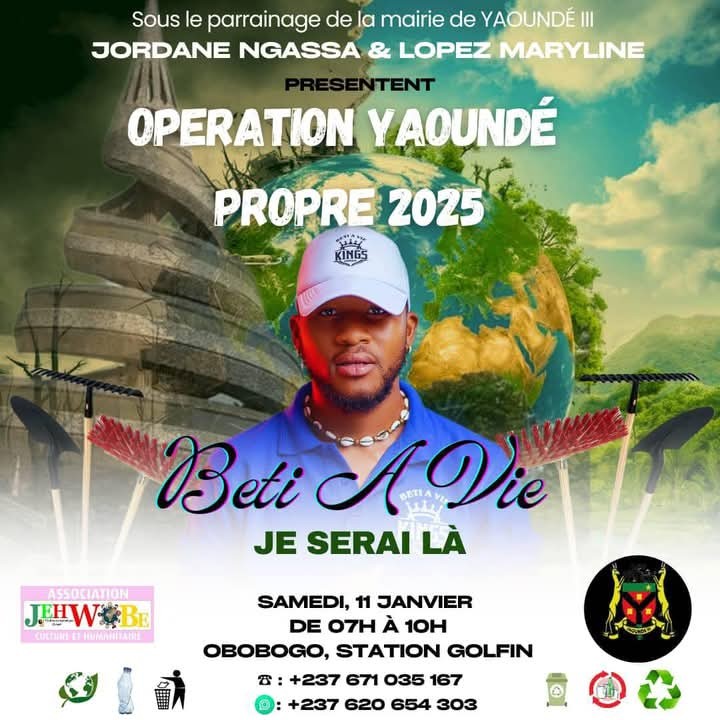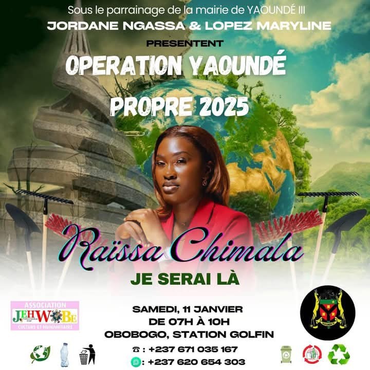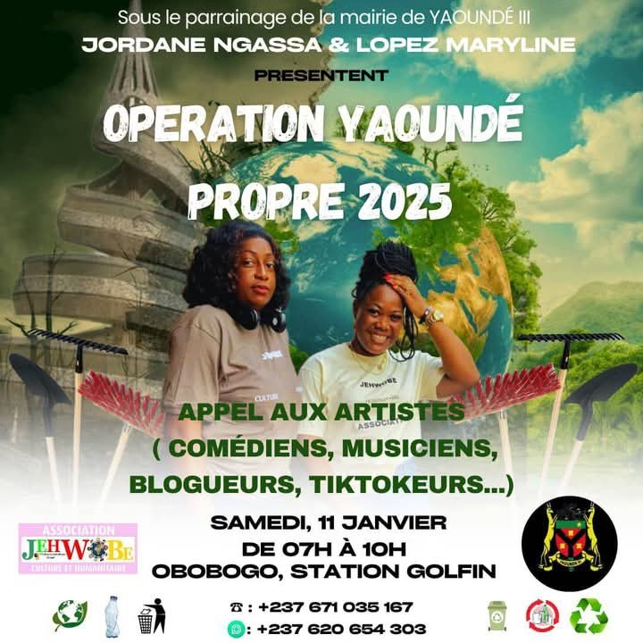 Sous le parrainage de la mairie de Yaoundé III, l’Opération Yaoundé Propre 2025 s’annonce comme un événement d’envergure destiné à mobiliser la communauté autour d’un enjeu majeur : la préservation de l’environnement urbain. Portée par les célèbres webcomédiennes et influenceuses Jordane Ngassa et Maryline Lopez, cette initiative, prévue pour le samedi 11 janvier 2025 de 7h à 10h à Obobogo, Station Golfin, vise à transformer un simple acte de nettoyage en un véritable mouvement citoyen.